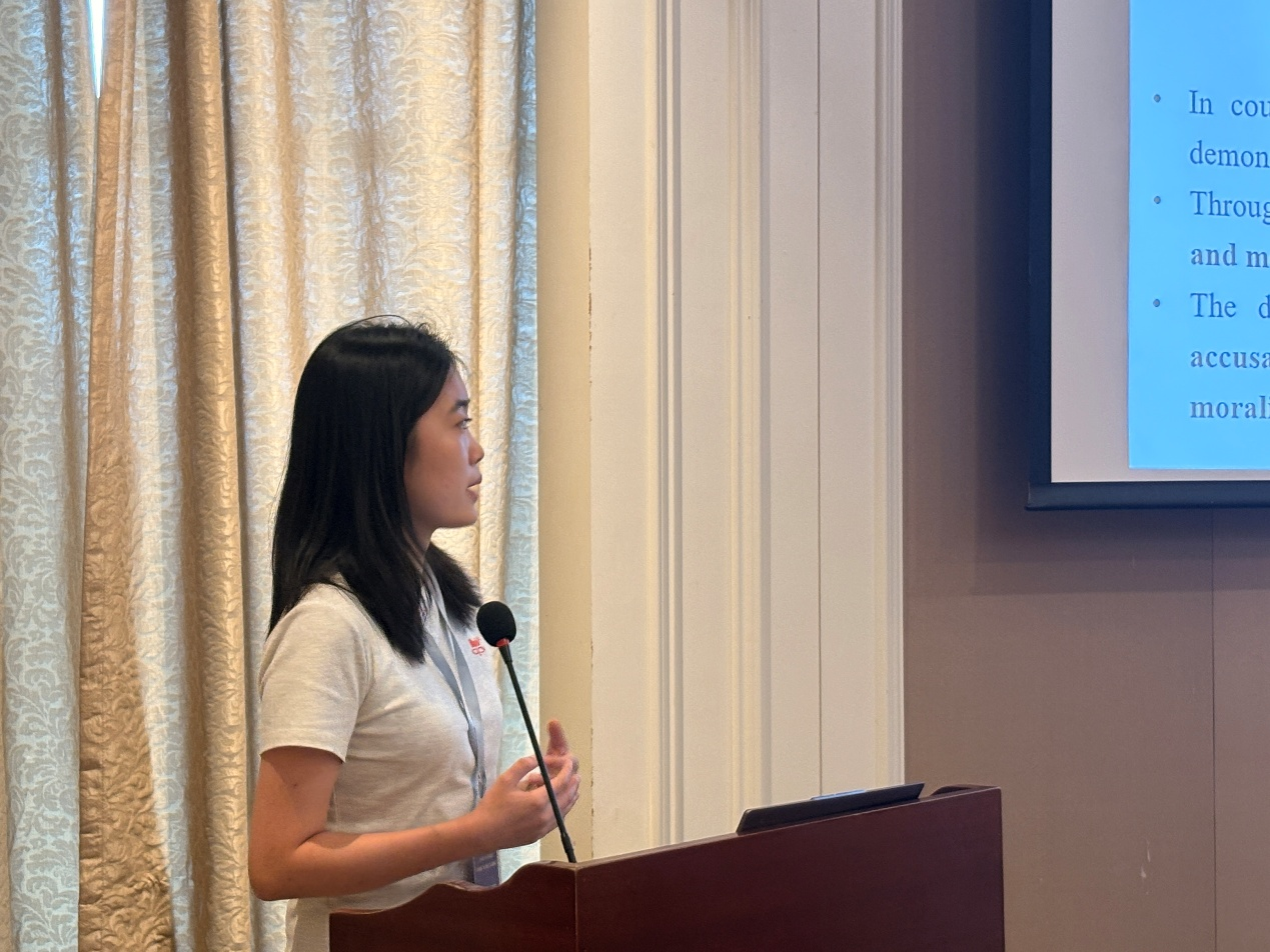 在研究生阶段首次参与法律语言学专业会议,我满怀激动与荣幸,尤其在现场听到多位曾在文献中熟知的专家带来主旨报告时,真切感受到法律语言学领域的前沿动态发展。而下午的平行论坛,更让我从参与者转变为分享者,获得了宝贵的实践锻炼。轮到我进行论文汇报时,面对台下的教授们,内心还是比较紧张的。我以五起故意杀人案的一审公诉词为研究对象,依托系统功能语言学中的评价理论,综合运用定性与定量研究方法深入探究公诉词中评价资源的协同运用策略。研究发现,公诉人通过精心调配态度、介入和级差资源,在刑法规范层面将被告人构建为确凿的犯罪实施者,在犯罪事实层面刻画其暴力谋杀者的形象,更在道德层面塑造出悖德者的负面标签。在报告结束后的交流环节,孟超教授针对我的研究提出了极具价值的建议:他指出在研究标注时应当精简系统,避免因过度繁杂影响分析深度,同时鼓励我聚焦典型案例,从多维度深入剖析公诉人对被告人身份的建构策略,并强调扩大样本量对提升研究可信度的重要性。这些宝贵的指导,不仅为我后续的研究指明了方向,更让我深刻体会到学术交流的意义与价值。此次论坛经历,既是一次展示自我的机会,更是一场难得的学习之旅。